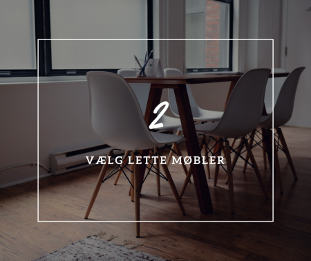 Til mindre kontorlokaler kan det virke tungt at indrette med store møbler, vælg derfor i stedet møbler med slanke ben og sørg for god plads omkring dem.