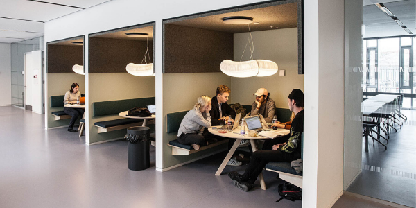 I princippet kan loungen i yderste konsekvens helt erstatte virksomhedens traditionelle arbejdsstationer. Selvfølgelig så længe de individuelle behov opfyldes, og der er mulighed for at “gå for sig selv” og være produktiv.