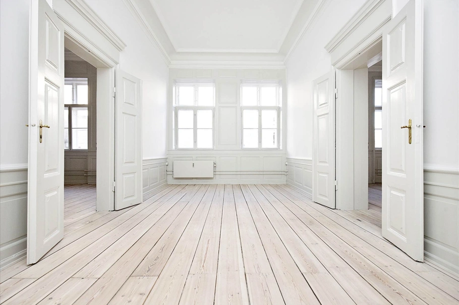 Boliglejlighederne er indrettet i herskabelig stil med højt til loftet, smukke plankegulve, store vinduespartier med forsatsvinduer og originale vægpaneler og stuklister. Arealerne spænder fra 297 til 349 m². lejlighederne er udlejet til under markedslejen, hvilket eventuelt kan give mulighed for en væsentlig fremtidig lejeoptimering. I 1. sals lejligheden findes flere store, fredede vægmalerier, som menes at være udført i forbindelse med ombygningen i 1769. Blandt disse malerier er et særligt historisk værk, der skildrer kong Christian VII på jagt, ledsaget af Johann Friedrich Struensee og dronning Caroline Mathilde. Vægmalerierne er senere blev restaureret af nationalmuseet.