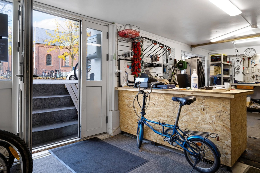 Velbeliggende erhvervsandel på 87 m² udlejet til cykelhandler. Både nabolaget og andelsforeningens beboere er glade for cykelhandleren, og ønsker ligesom lejer selv at forblive i ejendommen.