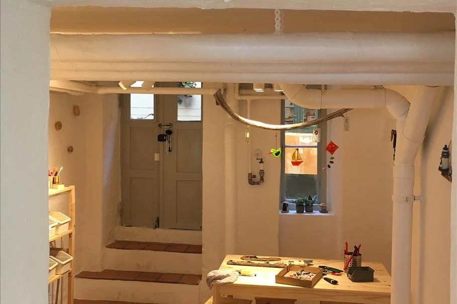 Der er indgang fra gaden, hvor man træder ind i to salgslokaler, som begge har gode udstillingsvinduer til gaden og fremstår lyse og venlige. Fra det første salgslokale er der adgang til et fint baglokale med udgang til gården. Fra det andet salgslokale er der adgang til køkken med håndvask og med vindue til gården. Fra køkkenet er der adgang til toilet ligeledes med håndvask. Der er overalt klinkegulv med gulvvarme. Derudover adgang til mindre depotrum/teknikrum. I gården er der tilhørende selvstændigt u-isoleret lagerlokale på 16 m²., hvor der er trukket el.