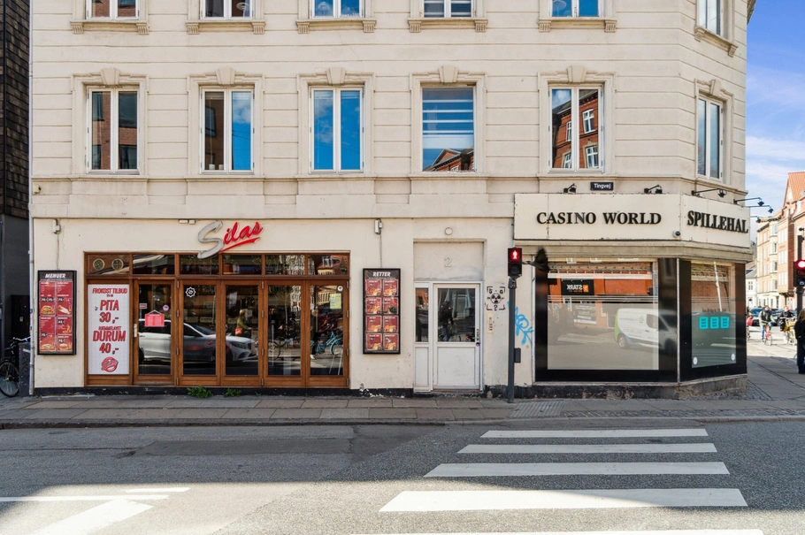 Den første erhvervsejerlejlighed har en synlig hjørnebeliggenhed på Amagerbrogade/Tingvej og er i dag udlejet og anvendt til spillehal. Spillehallen er godt besøgt, med en velkendt indretning med farverige spilleautomater langs væggene, og med en kundegruppe som er varierende trods de mange underholdningsvarianter. Facaden består af et indgangsparti samt 4 store facade vinduer, som både bidrager med at godt lysindfald som også giver mulighed for stor eksponering. Fra indgangspartiet trædes ind i spillehallens primære areal/kundeområdet. Herfra er der mulighed for yderligere at tilgå spillehallens toiletfaciliteter samt baglokale. Der er mulighed for at overtage denne