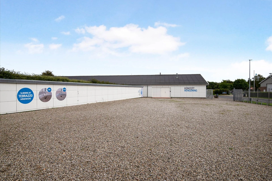 Udenomsarealerne op til erhvervsdelen er med kørefast underlag. Der er kraftigt hegn og porte ved erhvervsdelen. Den meget synlige del af pladsen ud mod rundkørslen, er indhegnet og belagt med perlesten. Området egner sig godt til udstilling af biler, trailere, maskiner eller lignende.