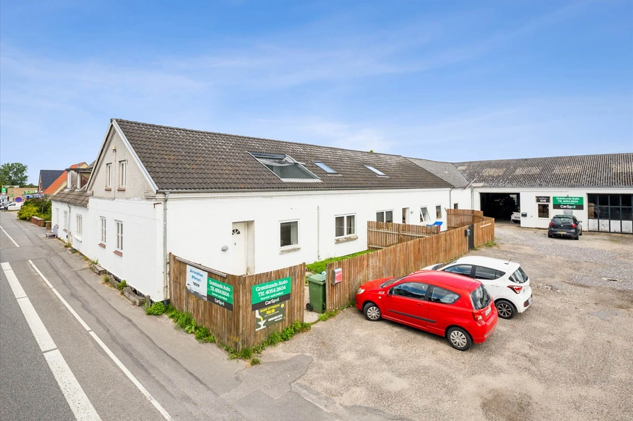 Bygningen er oprindeligt opført som købmandsforretning tilbage i år 1928, men fremstår i dag ombygget og renoveret med 6 lejligheder samt 1 erhvervslejemål, der er udlejet til Grønlunds autoværksted.
