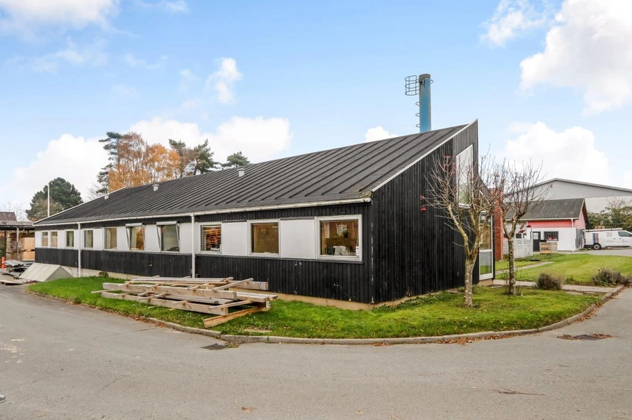 Phønix Tag Fyns administrations- og lagerbygning er beliggende i den sydlige del af Nr. Lyndelse - tæt på et større parcelhusområde.