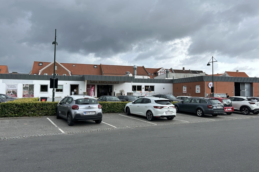 Bag ejendommen er der et større antal parkeringspladser, som er integreret med parkeringsområdet bag Kvickly. Der er adgang til de to erhvervslejemål både foran og bag ved ejendommen via en fælles mellemgang.