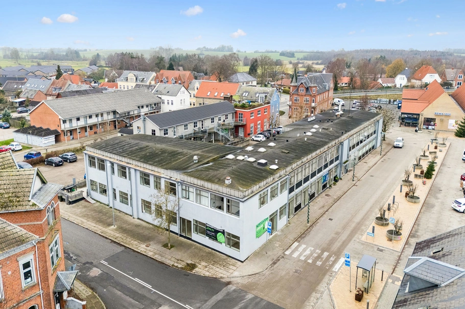 Ejendommen har et samlet areal på 3.216 m² fordelt på 1.831 m² bolig og 1.385 m² erhverv. Boligarealet rummer 20 boligenheder, mens erhvervsarealet omfatter 9 erhvervsenheder. Ejendommen er opført på en grund på 2.982 m², fordelt på fem matrikler. En stor del af ejendommen blev oprindeligt opført som rådhus og er siden omdannet til boliger på 1. sal og erhverv i stueetagen. Nuværende ejer har indenfor de sidste 5 år konverteret flere erhvervslejemål til boliger, hvilket sikrer god risikospredning.