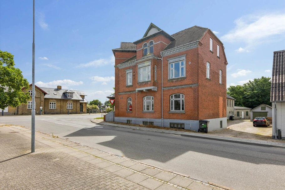 Historien går helt tilbage til år 1909 hvor ejendommen er opført som det lokale afholdshotel for byen. Bygningen er løbende renoveret og istandsat. Alle lejemål fremstår således i rigtig god stand og ejendommen har en rigtig god udlejnings belægning. Bygningen er opført i klassiske røde sten, med nydeligt tegltag samt hvide dannebrogsvinduer.
