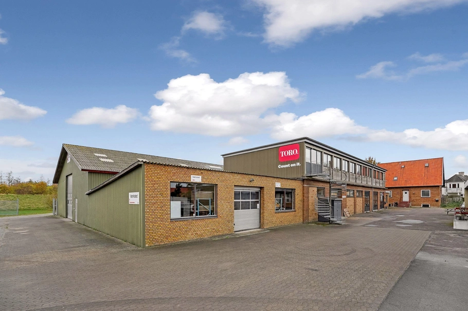 ca. 270 kvm. opvarmet lokale med aluminiumsport. Lokalet anvendes til reservedelslager. Separat garage ca. 50 kvm. samt forsendelsesafdeling ca. 165 kvm. med aluminiumsport (uopvarmet).