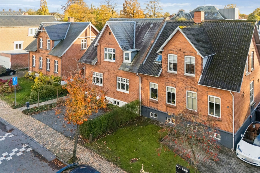 I stuen er der indrettet en renoveret bolig på ca. 90 m² (jf. BBR) med flot badeværelse, 2 stuer med åbent køkken, fordelergang samt soveværelse. På 1. sal en 3 vær. bolig på 90 m² (jf. BBR) med hvidt laminat køkken med mørk træbordplade, separat toilet og bad, fordelergang, soveværelse samt 2 stuer.