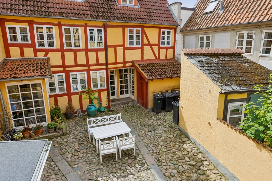 Bag ejendommen ligger et baghus, ligeledes fordelt med et erhvervslokale i stueplan, som i dag står tomt og klar til købers disposition eller udlejning. Lokalet omfatter et nydeligt flisebadeværelse, lille trinettekøkken og stort rum med godt lysindfald. Det vil være oplagt at undersøge mulighederne for ombygning af disse lokaler til regulær lejlighed på ca. 67 m². Dernæst er der i baghuset en 2 plans udlejningsbolig på ca. 100 m². Der er lille vindfang i stueplan, pænt og nydeligt hvidt flisebadeværelse med egen vaskemaskine, hvidt grebsfrit køkken/spisestue, 2 værelser på 1. sal samt stor stue på 2. sal, massive fyrretræsgulve.