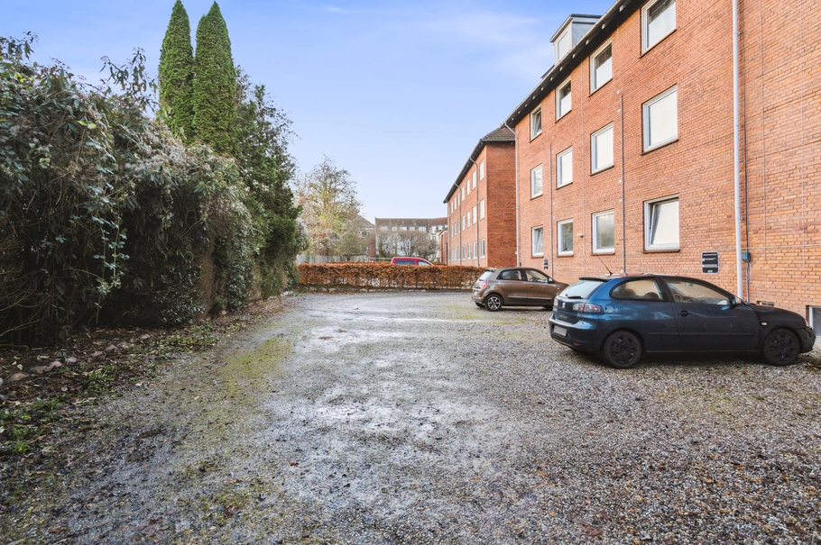 Udenomsarealer er udlagt med hyggelig forhave, flisebelagt opbevaringsplads til renovationsbeholdere og et stort parkeringsområde bagved ejendommen. Parkeringspladsen benyttes for nuværende vederlagsfrit af ejendommens beboere, med mulighed for driftsoptimering i form af lejeindtægt for parkeringspladserne. Det vurderes at der kan holde +10 biler på området.