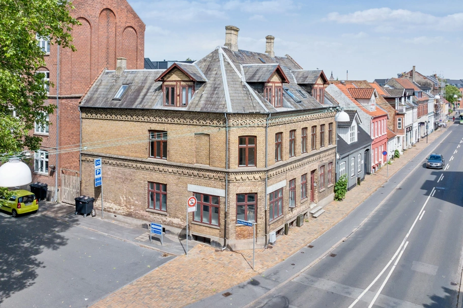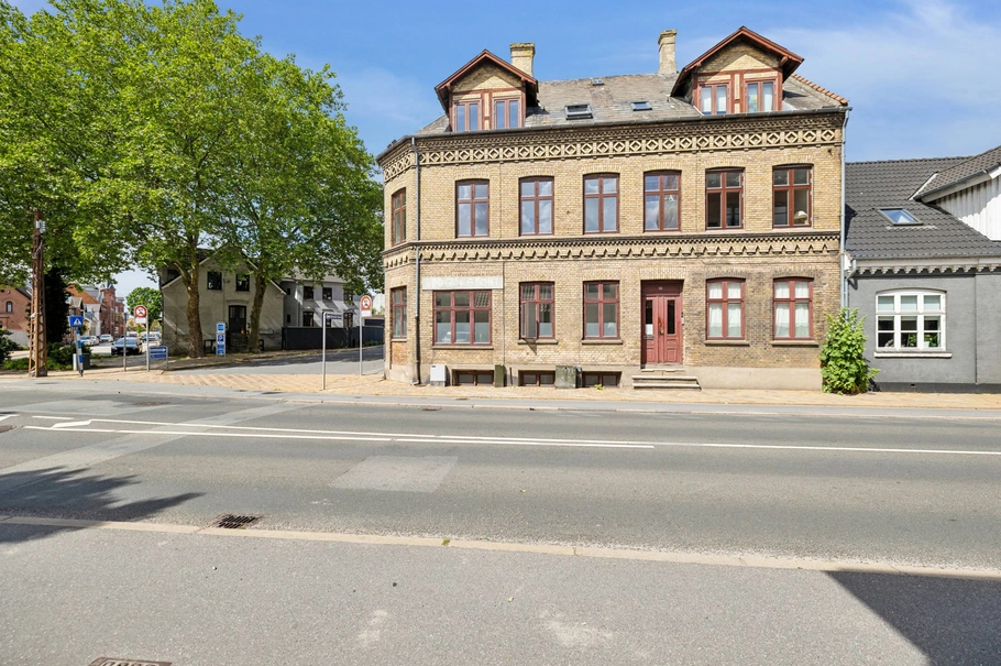 Ejendommen, der er en gulstensejendom, belagt med naturskiffertag, er opdelt i 6 beboelsesejerlejligheder. Lejlighederne er i varierende størrelser fra 67m² - 90m², hvilket er super gode og attraktive størrelser til udlejning. Alle lejligheder er renoverede, og fremstår med fine køkkener og badeværelser.