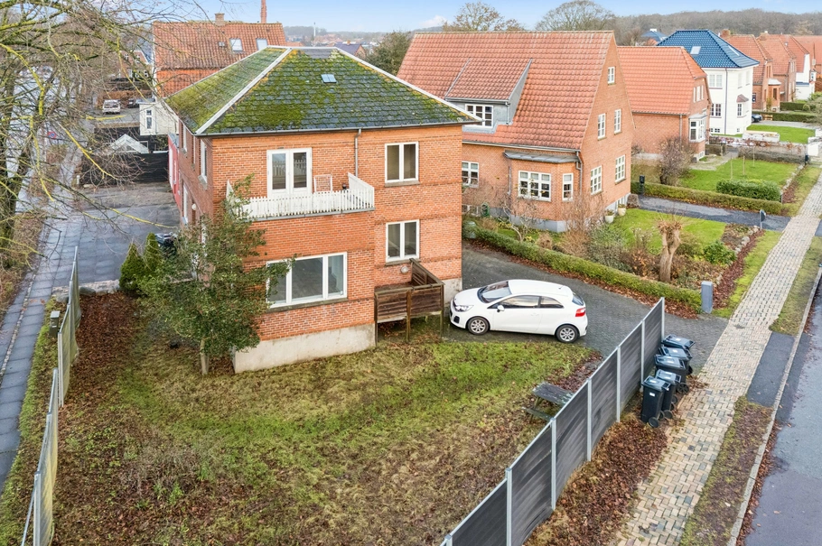 Ejendommen er opført i røde mursten med skifertag. Der er mindre indkørsel og have til ejendommen.