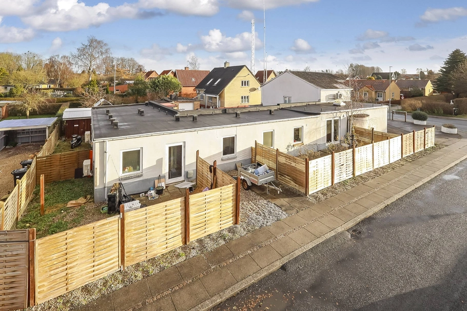 Der er fin lukket gård til brug for de 3 boliglejemål samt separat opbevaringsskur for hver enkelt lejer.