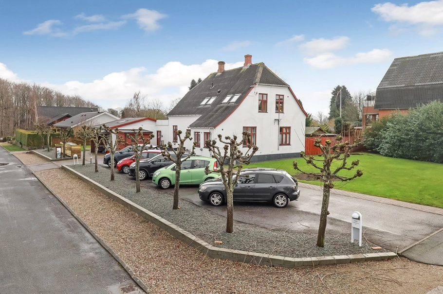 Der er flere parkeringspladser på matriklen, til brug for medarbejdere og besøgende. Til ejendommen hører en dejlig have, som er afskærmet med hegn, således at beboerne ugenert kan benytte området, hvor der både er have bassin og mindre pavillon til hyggeaktiviteter.