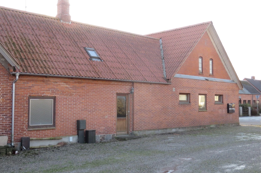 Endvidere bagerst i bygningen 85 kvm. lagerlokale. Have med græsplæne og perlestensbelagt parkeringsplads.