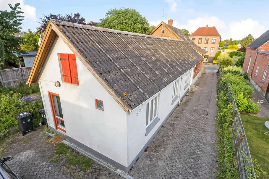 Ejendommen indeholder 2 rummelige lejligheder og består af et forhus opført i røde mursten og tagdækket med eternit.