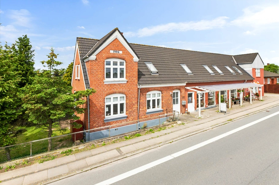 Erhvervslejemålene består af en frisørsalon, solcenter og en tøj- og blomsterbutik. Ny ejer kan overtage solcenterets aktiviteter og arealerne med tøj-/blomsterbutik, der i dag drives af nuværende ejer.