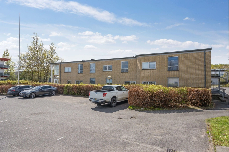 Flot og gedigen erhvervsejendom i gule mursten, som er opført i 1971 og tilbygget i 1988. Ejendommen består af 955 kvm kontor, 105 kvm beboelse og 350 høj kælder med direkte udgang i niveau.~ Der er igennem årene sket mange gode forbedringer, hvor der bl.a. er skiftet tagpap tag i 2012 og lavet badeværelser i 2015.