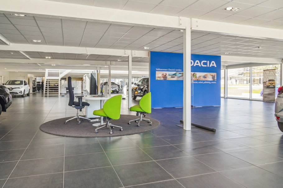 Indrettet med stort, moderne salgsareal med venteområde, udstilling, modtagelse, toiletter samt kontor i stueetagen.