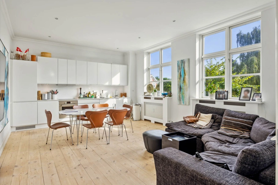 Ejendommen rummer pt. fire nyrenoverede beboelseslejligheder, ifølge BBR-ejermeddelelsen er stueetagen dog registreret som én samlet lejlighed på 179 m². Opdelingen af stueetagen i to lejligheder er således ikke godkendt og forventes ej heller at kunne blive det.