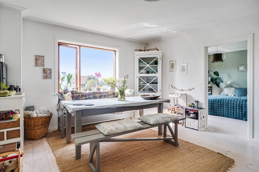 Alle lejligheder er lyse og indbydende og indrettet med entré, pænt elementkøkken, flisebadeværelse, soveværelse, spisestue og dagligstue med udgang til egen altan. Hver lejer har hver deres eget gasfyr. De tre af lejligheder er gennemrenoveret, mens der er potentiale for renovering og lejeforhøjelse på den sidste.