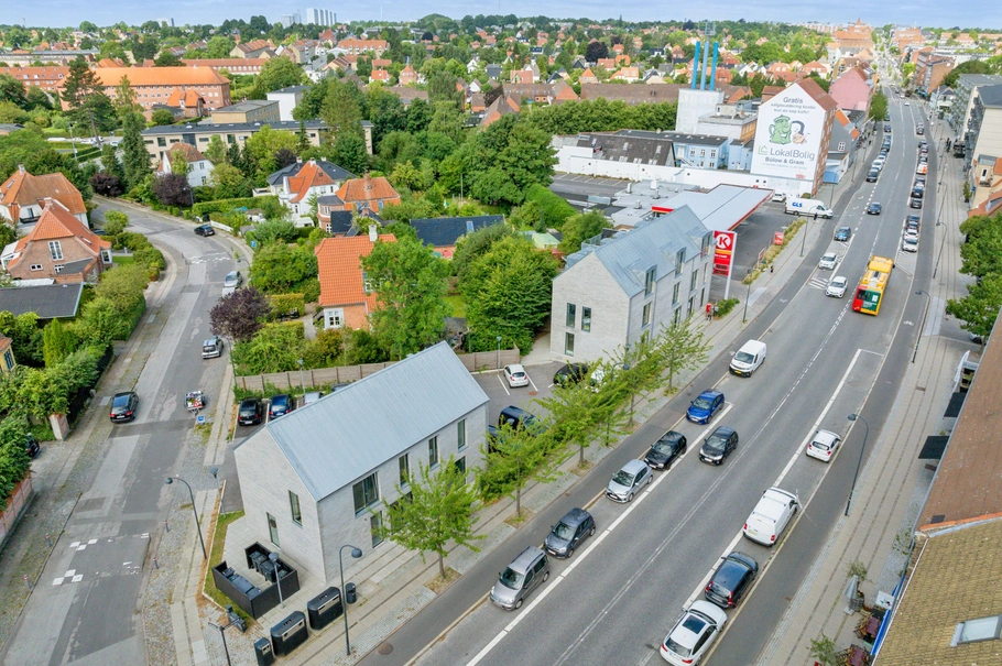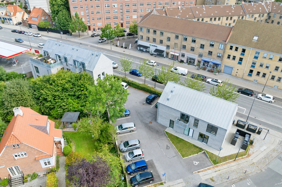 Ejendommene på Søborg Hovedgade 11 fremstår elegante og moderne med grå mursten, store vinduespartier og skrå tage, som giver dem et minimalistisk, nordisk præg. De store vinduer sikrer et fantastisk lysindfald og skaber en lys og indbydende atmosfære i lejlighederne.