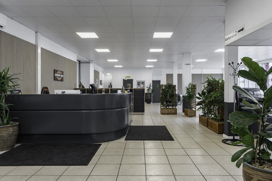 Ejendommen indeholder i stueplan showroom til cykelimportør med mindre cykelbane der fremstår særdeles flot. Derudover et autoværksted med salgslokale, værksted der er delt op med flere rum, tillige med lifte samt port til værkstedet.