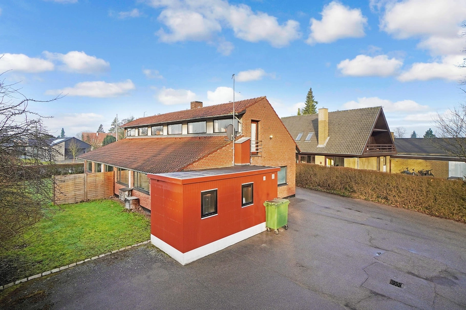 Ejendommen er opført i røde mursten med rødt tegltag og er beliggende i godt kvarter i forhold til anvendelsen.
