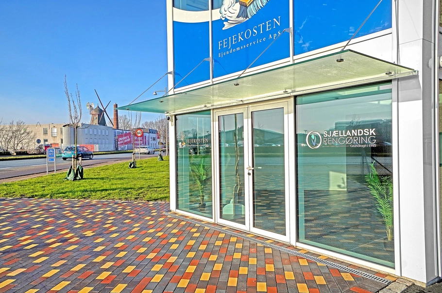 Ejendommen er blevet ”åbnet op” ud mod Hovedvejen med nyt stort glasparti ved indgangen.