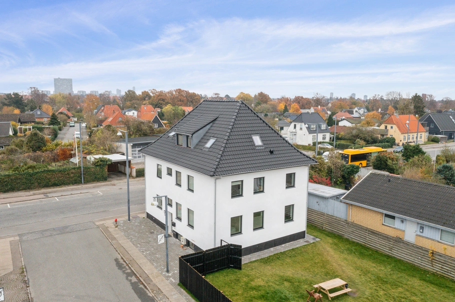 Ejendommen er oprindeligt opført i 1931 og er for nyligt gennemgribende moderniseret. Her omdannede man bl.a. ejendommen fra erhverv til bolig. Ejendommen består af 5 boligenheder, som alle udlejes til bostedet ”LATA” på en samlet lejekontrakt med 5 års uopsigelighed, hvilket gør ejendommen nem at administrere. Udvendigt fremstår ejendommen i pudsede hvide facader med nye vinduer. Taget er et valmtag belagt med sort tegl. Man har både renoveret kvistene og indsat nye tagvinduer. Indvendigt er ejendommen ligeledes gennemgribende renoveret. Boligenhederne varierer i størrelser á 59-70 m2, hvilket skaber fleksible muligheder for forskellige beboerbehov. Hver enhed er udstyret med et lyst køkken-alrum, eget toilet/bad og enten ét eller to soveværelser. Ejendommen vurderes såvel ud- som indvendigt at være i rigtig god stand. Der skal således ikke bruges penge på ejendommen de næste mange år. Hent et prospekt på propertyadvice.dk for yderligere oplysninger.