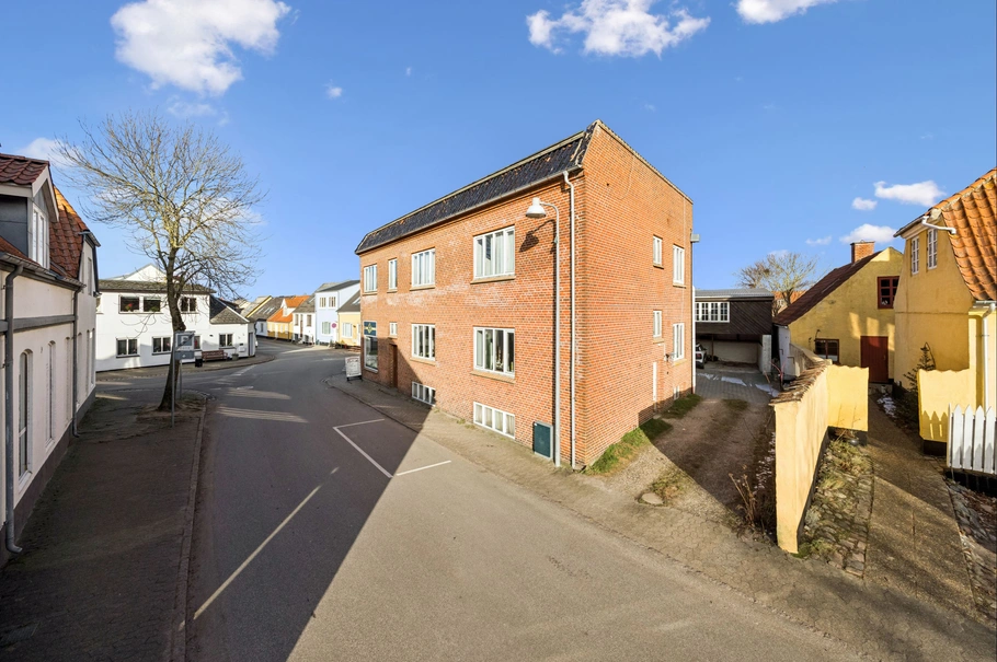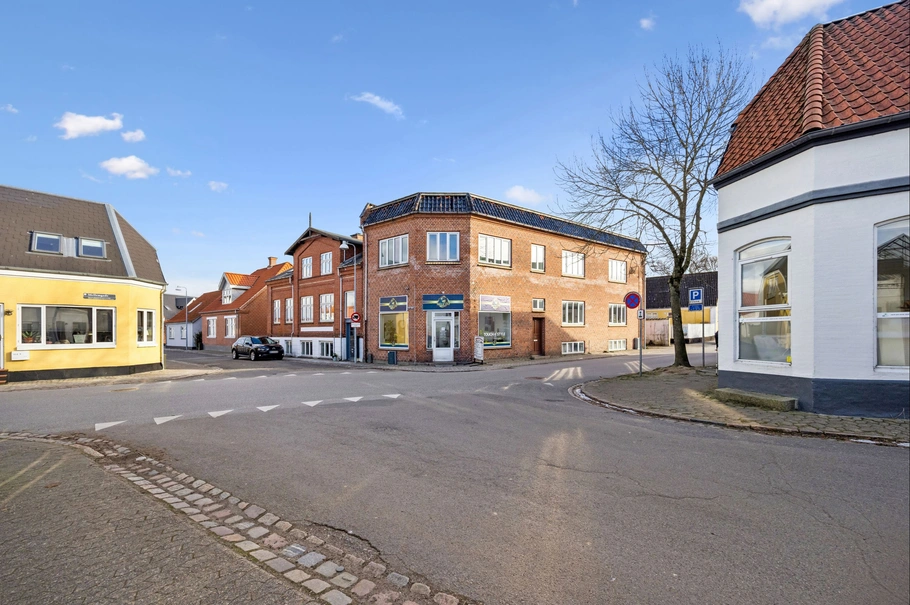 Hjørneplaceringen i Mellemgade giver ejendommen en flot synlighed i gadebilledet og et godt lysindfald i både boliger og erhvervslejemål.
