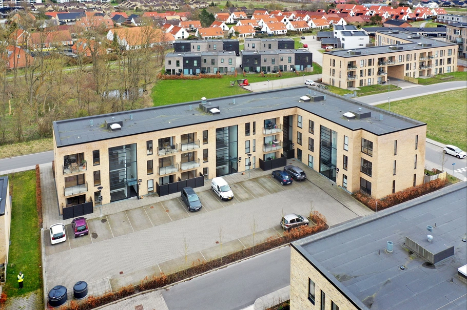 24 boliger med altan/terrasse samt elevator og parkering ved døren. Ejendommen er udstykket i ejerlejligheder