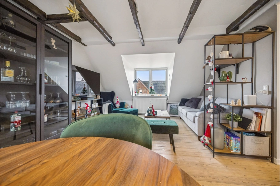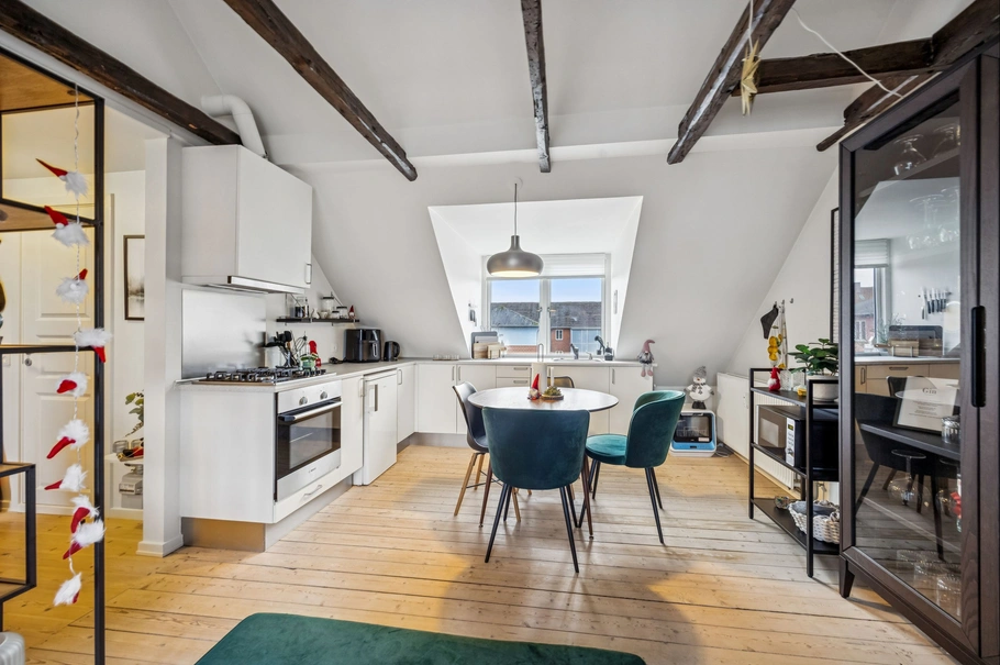 • To 3-værelses lejligheder samt stor 2-værelses med loft til kip og fritlagte bjælker