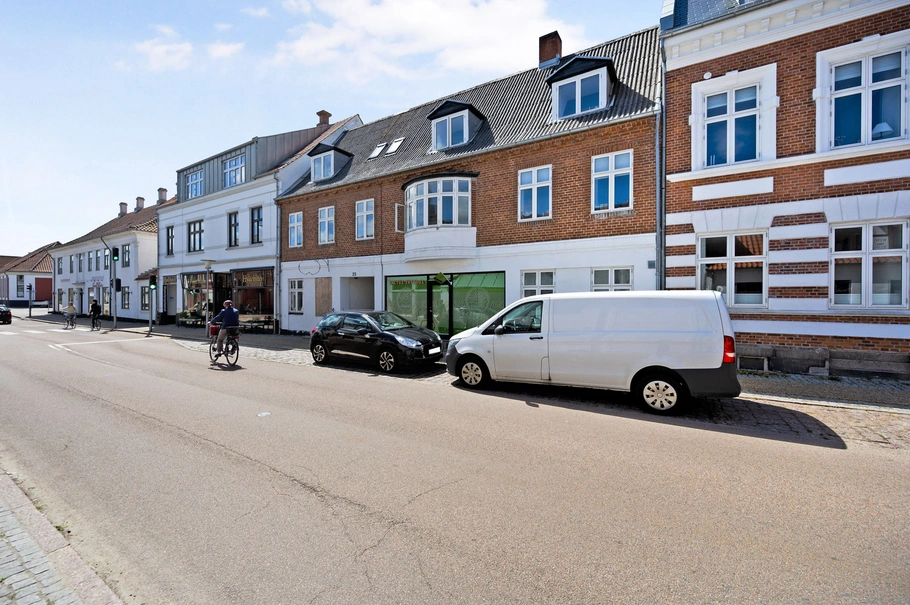 Alt i alt en ejendom der har gennemgået en større renovering, men fortsat passer rigtig godt ind i den gamle bydel i Hjørring.