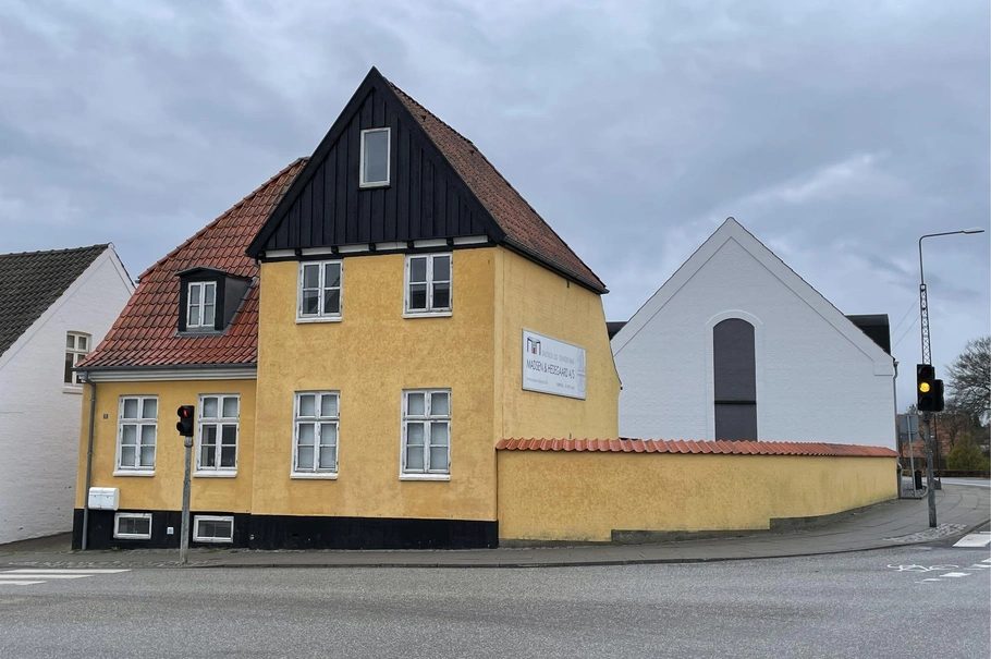 Pt. er en del af den ene gavl udlejet til reklameplads for lokal tømrermester.
