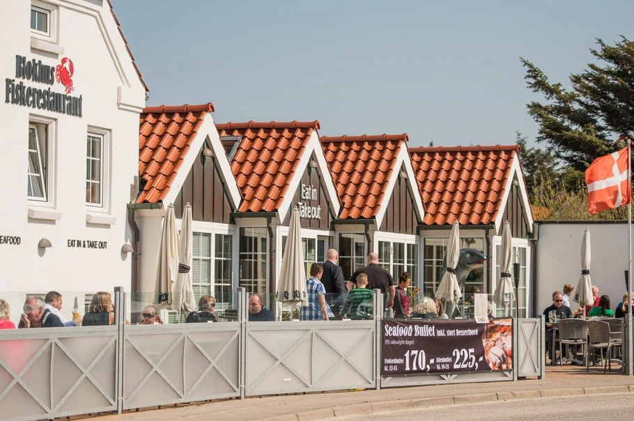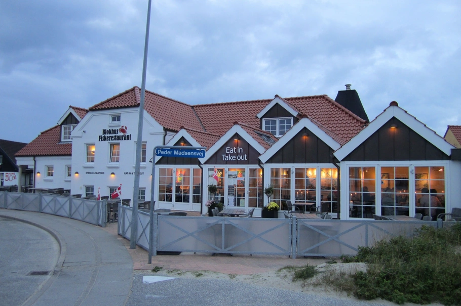 Blokhus Fiskerestaurant som har forpagtet ejendommen, er kendt for sin populære frokost og aftenbuffet med et stort udvalg af fisk og skaldyr samt spændende kødretter.