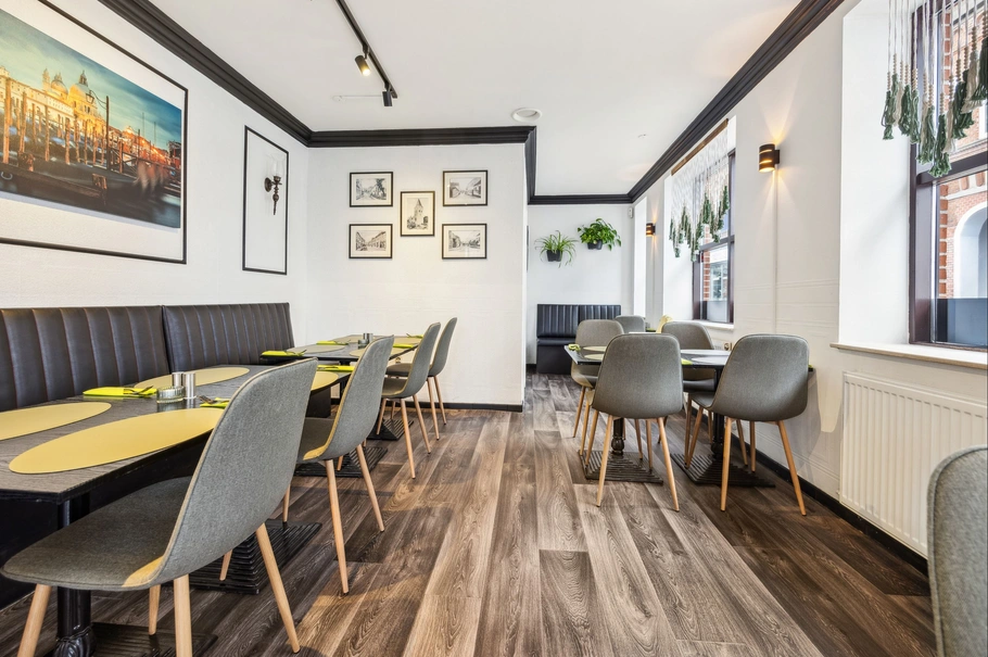 Ejendommen er beliggende på hjørnet af Skibsgade og Adelgade og indeholder 2 boliglejemål samt 1 erhvervslejemål, der er udlejet til restaurant og take away.