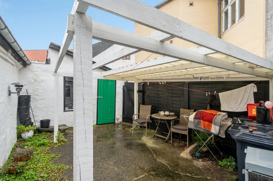 Grunden er på ialt 82 m² og består af fantastisk lukket gårdmiljø med tilhørende skur.