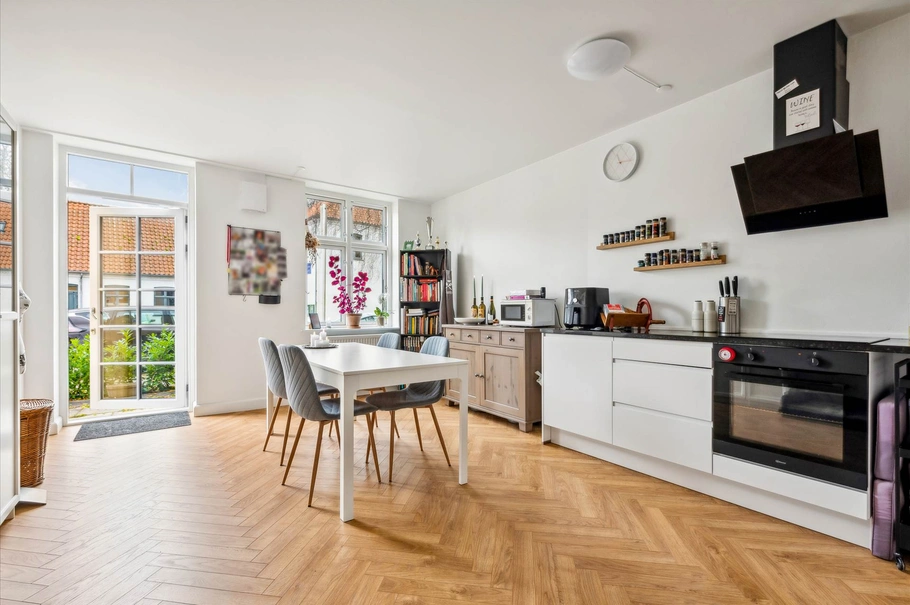 Her er 4 rigtig gode beboelseslejligheder i forskellig størrelse der alle fremstår i delvist moderniseret stand med nyere køkken og bad samt plankegulve. Stuelejligheden st.tv. er for nyligt istandsat fra A-Z og har tillige brugsret til solrig forhave. Indrettet med møblerbar entré, flot moderniseret brusebadeværelse, lille gang, soveværelse, stort køkken alrum med direkte udgang til forhave, samt ekstra tv-stue. Overalt flotte gulve (sildebensstruktur), flotte hvide vægge og lofter.