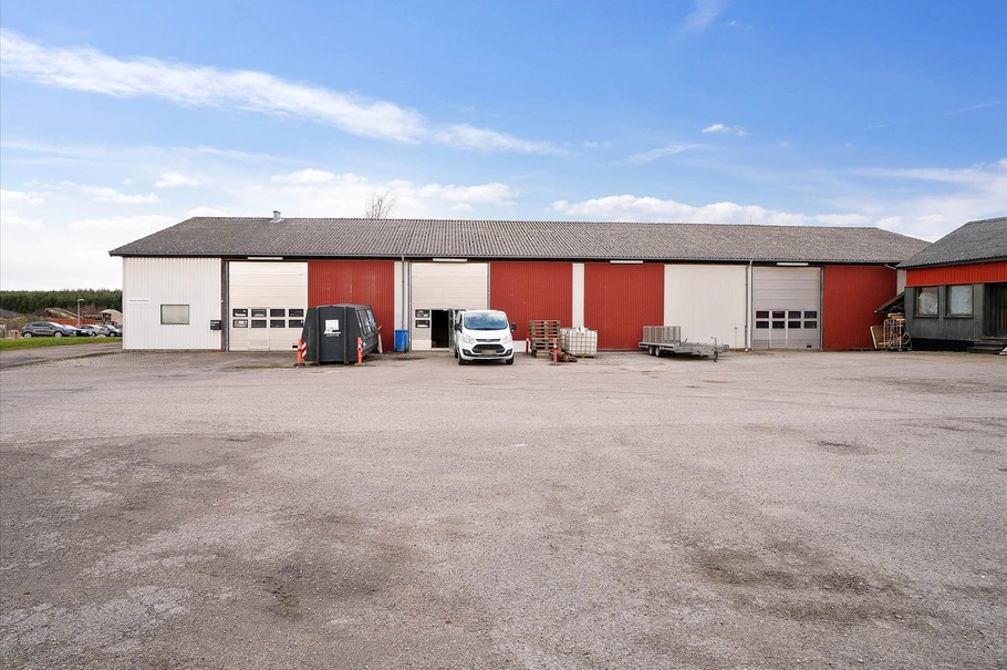 Ejendommen i alt 1.135 m² indeholder bolig, kontor samt 3 lager/kontor lejemål. Lagerlokalerne er alle med op til ca. 6 meter i højden samt med 3 højporte. Stor asfalteret vende- og parkeringsplads og mulighed for flere P pladser. Indvendigt er hallerne belagt med CF sten og kan nemt opdeles til både en stor hal på ca. 551 kvm samt to eller tre mindre haller på hhv. 62, 132, 264 kvm. Hallen er delvis isoleret.