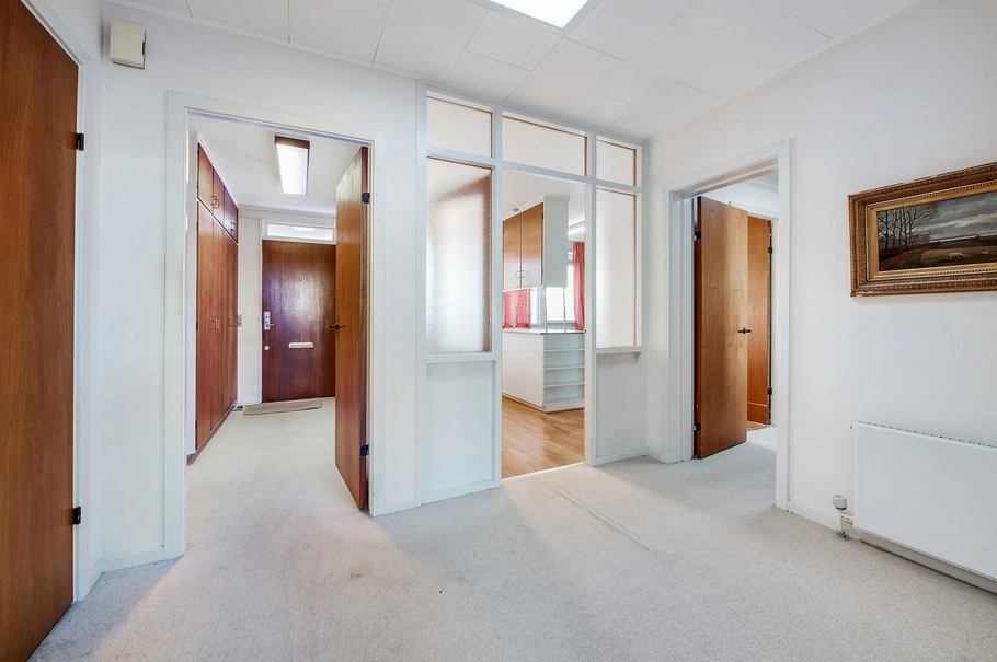 Kigger man nærmere på førstesalens lejlighed, er der tale om en rigeligt stor bolig med mange muligheder. Den består nemlig af en voluminøs opholdsstue med udgang til vestvendt altan, hele tre store værelser med mulighed for at etablere et fjerde, badeværelse med toilet, gæstetoilet, disponibelt rum, entré og ikke mindst et hyggeligt spisekøkken. Lejligheden er i ældre stand, men fremstår ellers lys og fin, og som vi allerede har nævnt, er det oplagt at istandsætte og/eller opdele boligen i to enheder. Der hører endvidere 2 kælderrum til lejligheden, som er beliggende under gården.