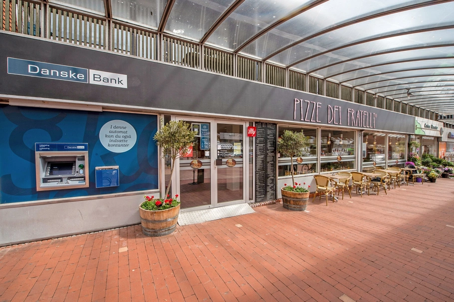 Ejendommen er fuldt udlejet til en restaurant, lager og kontor samt til Danske Banks pengeautomat.