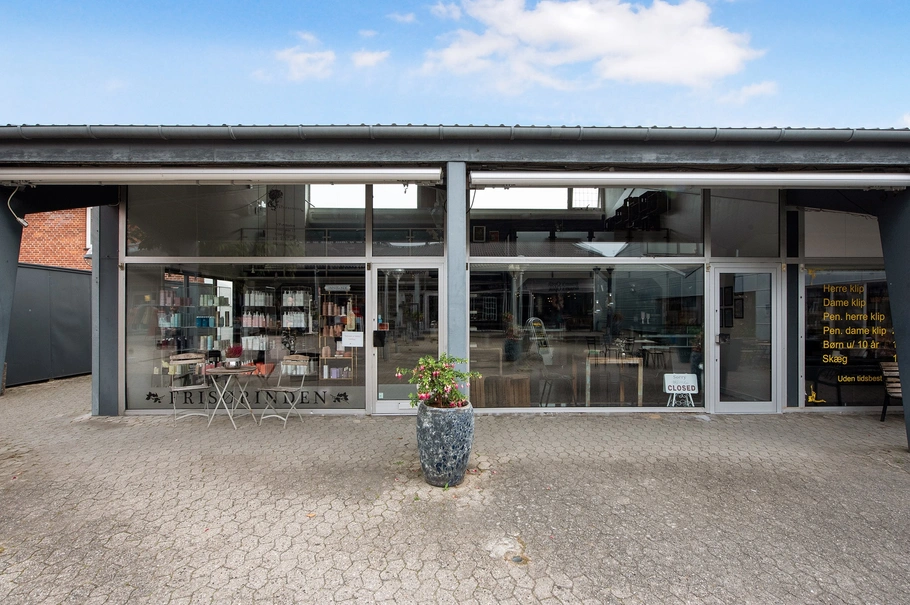 Adressen er helt central i Helsinge, som er en hyggelig og velfungerende by i Nordsjælland med en bred og stabil beboeropbakning om centret. Selve arkaden ligger som en del af Helsinges hjerte tæt på både gågaden og alle hverdagens fornødenheder, og der er tilmed en station i byen med gode forbindelser mod både Tisvilde og Gilleleje. Efter kort tids kørsel er der desuden nem adgang til motorvejen, og således har I de bedste forudsætninger for gode ankomstmuligheder til matriklen.