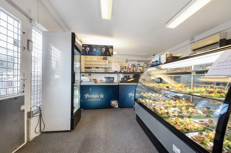 Det ene lejemål er udlejet som kiosk. Den er veldrevet og tilbyder flot smørrebrød og catering til områdets beboere. Derudover er det andet lejemål lige nu drevet som værksted og til salg af cykler, knallerter mv. Dette lejemål står tomt pr. 1. marts, hvorefter det enten kan udlejes til erhverv eller omdannes til boligformål. Hele ejendommen er ældre, men fremstår imidlertid pæn og uden behov for større istandsættelser foreløbigt.