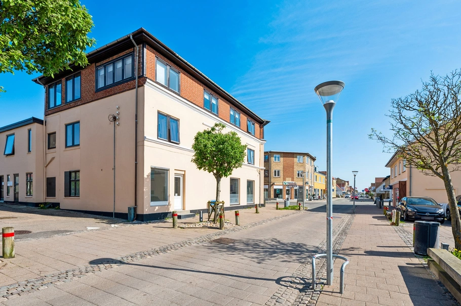 Ejendommen trænger til en lettere opfriskning, men alt dette glemmes for en stund, når du træder indenfor i selve erhvervet. Her vil store og lyse butikslokaler præsentere sig, og hjørneplaceringen sikrer de bedste forudsætninger, når det kommer til erhvervets synlighed. Foruden butikslokalerne er der to køkkener, to toiletter, og der vil være mulighed for at etablere separate kontorlokaler, hvis det er ønskeligt.