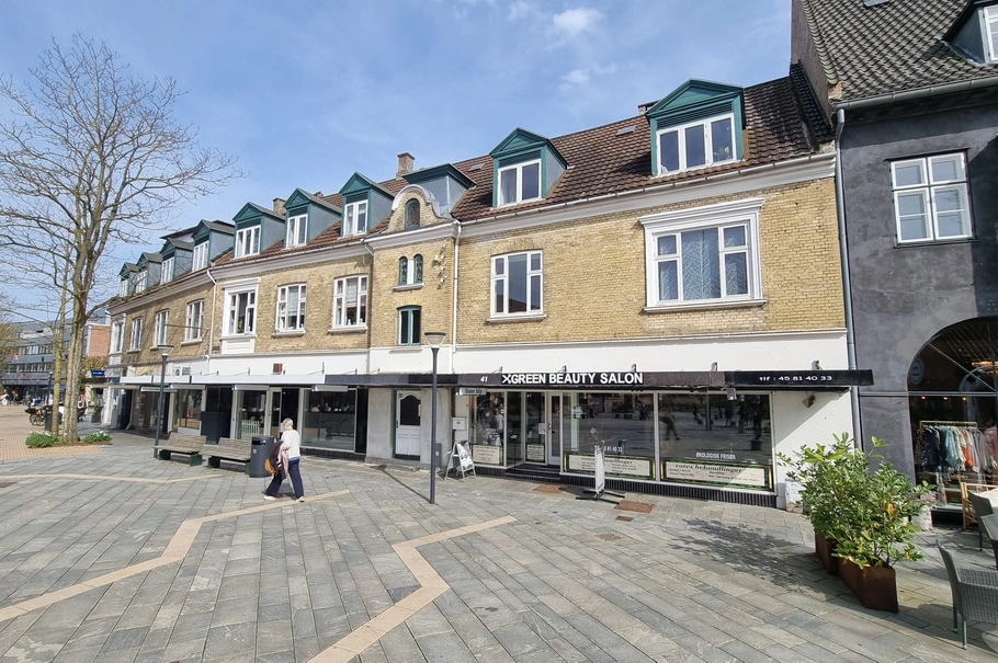 Vi har nu fornøjelsen af at udbyde disse skønne ejendomme med den bedste beliggenhed på gågaden i Birkerød. På hver side af ejendommen er en god blanding af butikker, caféer og to store åbne pladser, hvor der ofte er en livlig aktivitet, bl.a. i forbindelse med Birkerød Torvedage. Endvidere er der under 1 km til Birkerød Station og biblioteket.