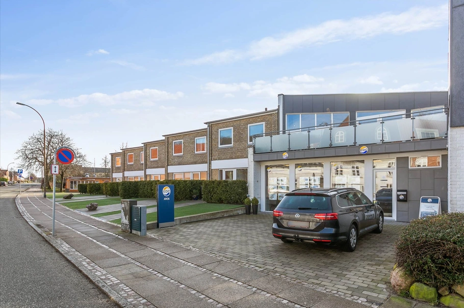 Med en attraktiv placering på Hovedgaden i gammel Brabrand tilbydes 3 ejerlejligheder i veldrevet ejerforening – 2 boliger og 1 erhverv. Dertilhørende 3 parkeringspladser. Selve ejendommen Hovedgaden 41 / Søvej 1 er opført i 1910 og består af 2 sammenbyggede bygninger. Ejendommen er opdelt i ejerlejligheder med i alt ca. 900 m² beboelse og 390 m² erhverv. Erhverv, der består af detail og anden servicevirksomhed er beliggende i stueplan med facade mod Hovedgaden, mens boligerne enten er placeret på 1. sal og opefter eller mod gården i bygning 2. Bygning 1 er opført i mursten, pudset og malet hvid, og med rødt tegltag med høj rejsning. Bygning 2 er ligeledes opført i mursten med pudset og hvidmalet facade, men med tag af tagpap. De udbudte ejerlejligheder er alle beliggende i bygning nr. 2. Med adressen Søvej 1E, dog med den primære butiks facade mod Hovedvejen, er 98 m² erhvervs ejerlejlighed der er indrettet og udlejet til mæglerforretning for en boligmægler. Lejen er markedskonform og lejemålet er fra lejers side uopsigeligt indtil sommeren 2024. Lejemålet er nyrenoveret og med moderne aptering herunder lyse gips vægge og lofter, sidstnævnte med indbyggede lysarmaturer. Gulvet er belagt med et tidløst gråt gulvtæppe/tæppefliser. Lejemålet er primært indrettet som storrumskontor med mødelokale med glasvæg og personalefaciliteter i form af køkken med spiseplads og toilet. Der er parkeringsmulighed lige foran lejemålet. Med adressen Søvej 1F og G udbydes 2 udlejede og totalt moderniserede ejerlejligheder. Begge er beliggende i stueplan med egen indgang. Lejlighederne er på hhv. 52 og 56 m² med 2 beboelsesrum der omfatter stue/alrum og separat soveværelse. Køkkenet er med alle hårde hvidevarer og er placeret i åben forbindelse med stuen. Gulvene er af lyst træ og vægge og lofter af gips. Badeværelse er med væghængt toilet og vaskemaskine. Her er klinker på gulvene. Alle de udbudte kvm. er i moderne og nyrenoveret stand, med en yderst attraktiv placering og lejemål der aldrig vil opleve tomgang eller besvær med udlejning. Ejendommen omkranser hyggeligt og stille gårdmiljø hvor foruden mulighed for ophold desuden er belagt med grus og anvendt til parkering. Hele bygning 2 var erhverv før omdannelsen. Således er der fri lejefastsættelse på boligerne.