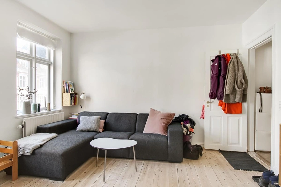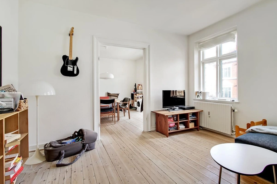 Lejlighederne består af en entré, 2 stuer en-suite, et stort soveværelse samt nyere køkkener og bad. De tre værelser egner sig rigtig godt til såvel unge som til mere etablerede par. Lejlighederne har et mondænt udtryk og dermed en meget bred appel.